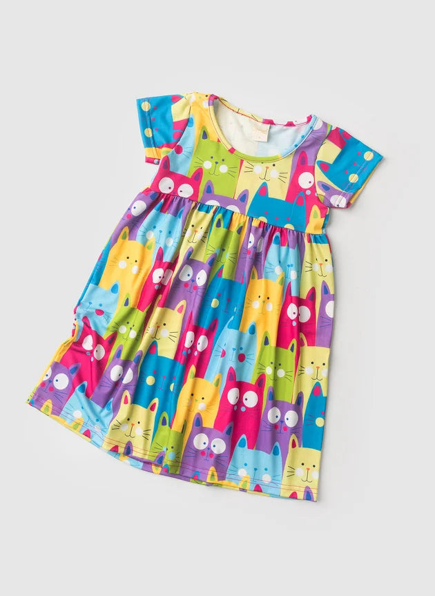 Garanta conforto e qualidade para sua criança com o Vestido com Manga Verão Menina Gatinhos.